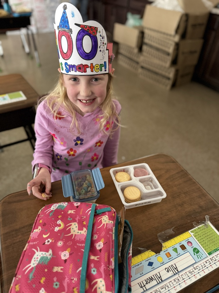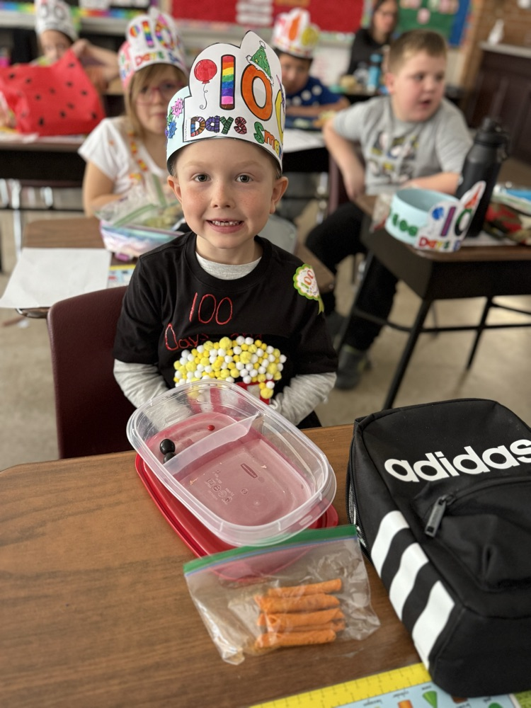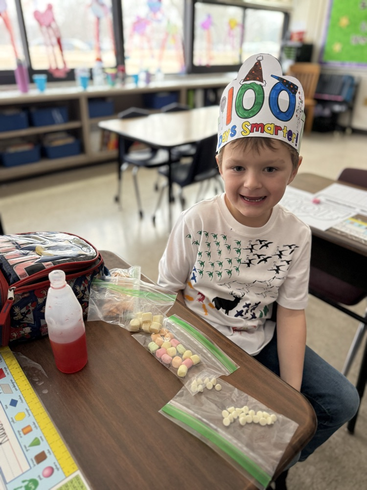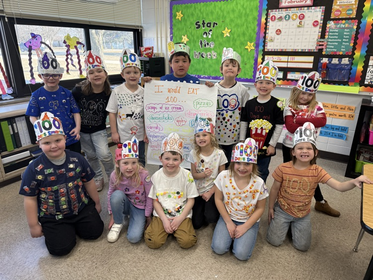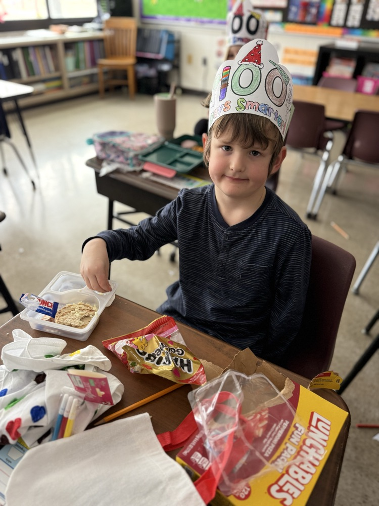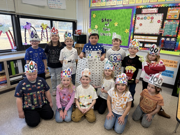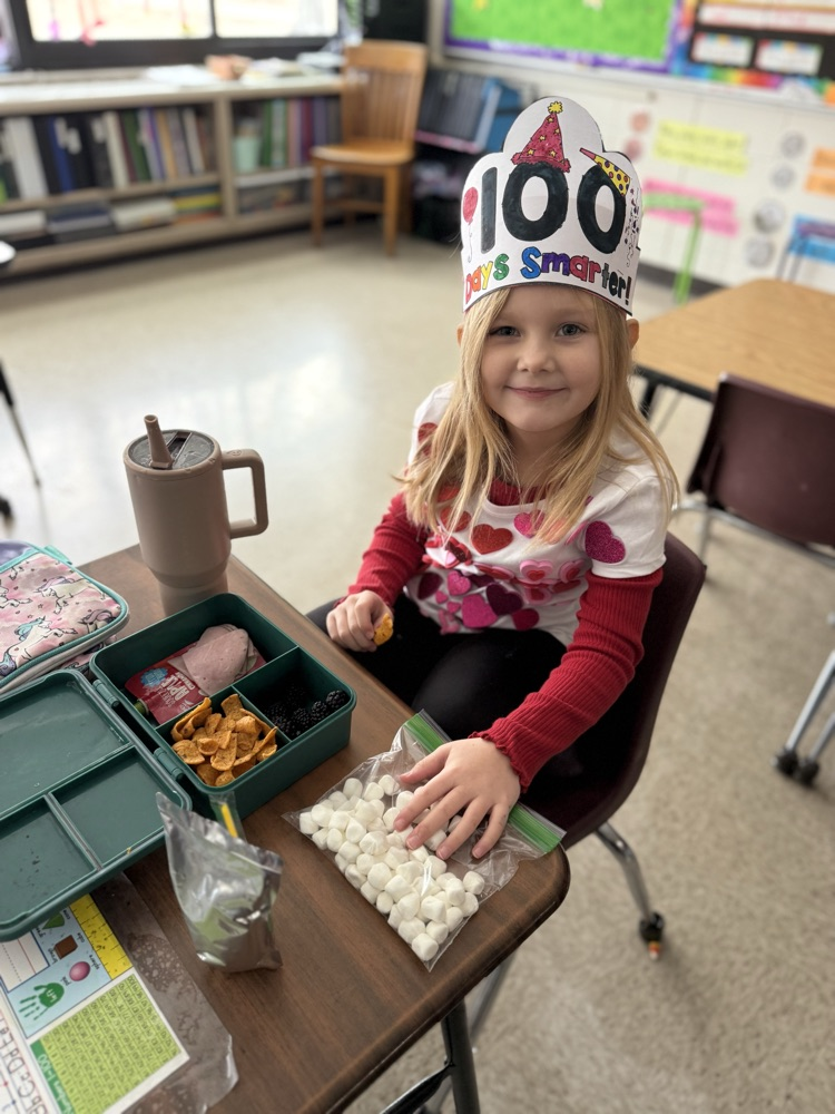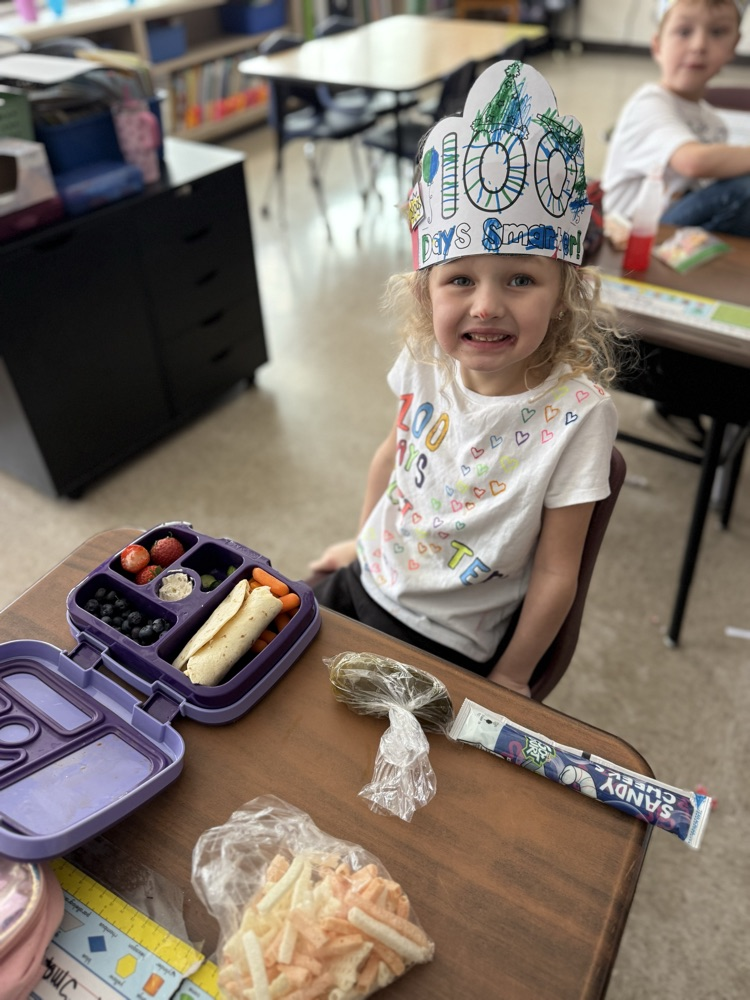 Kindergarteners had a fantastic 100th day of school! We made headbands, jumped 100 times, danced, cheered our WHS lady wrestlers, played team build games in math (racing to 100), and read 100th Day Worries and 100 Snowmen. 💯