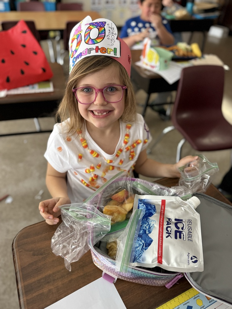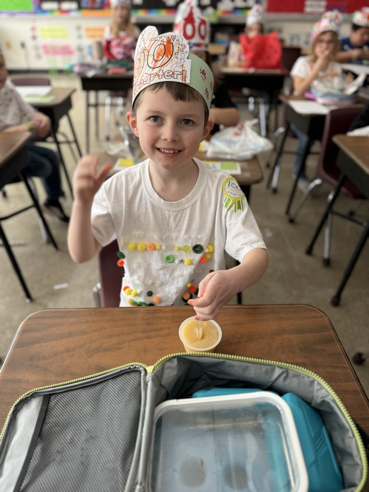 Happy 100th day of school! 1st grade had a busy day, we wore shirts with 100 things on it, found 100 pennies, licked a tootsie pop 100 times, chewed starburst 100 times, and packed 100 items for lunch.